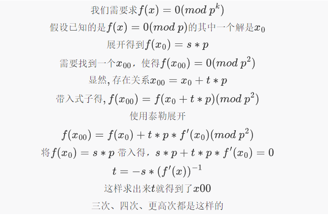 给定 a 满足 a^e ≡ c (mod p),把解提升到 mod p^k